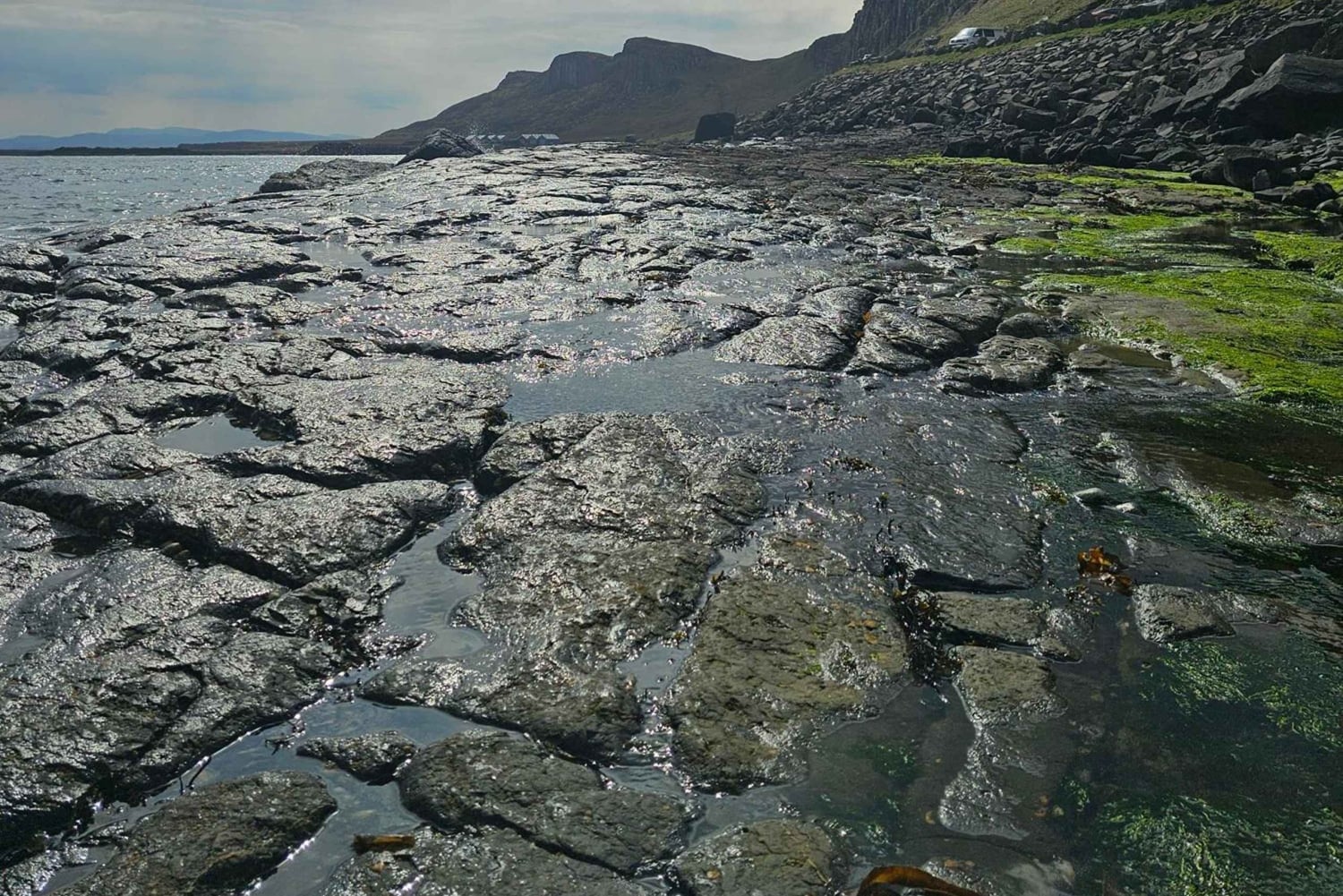 Dernæst besøger du de imponerende Lealt Waterfalls og udsigtspunktet Kilt Rock and Mealt Falls. Stop ved An Corran Beach i Staffin for at finde de nyligt opdagede Megasaurus-dinosaurfodspor. Tag derefter til Quiraing, et andet fantastisk udsigtspunkt, hvor du kan tage fantastiske billeder, og den berømte fotogene Fairy Glen.